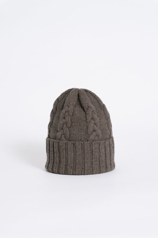 MERINO Handknit Cable Hat - Mulch Brown