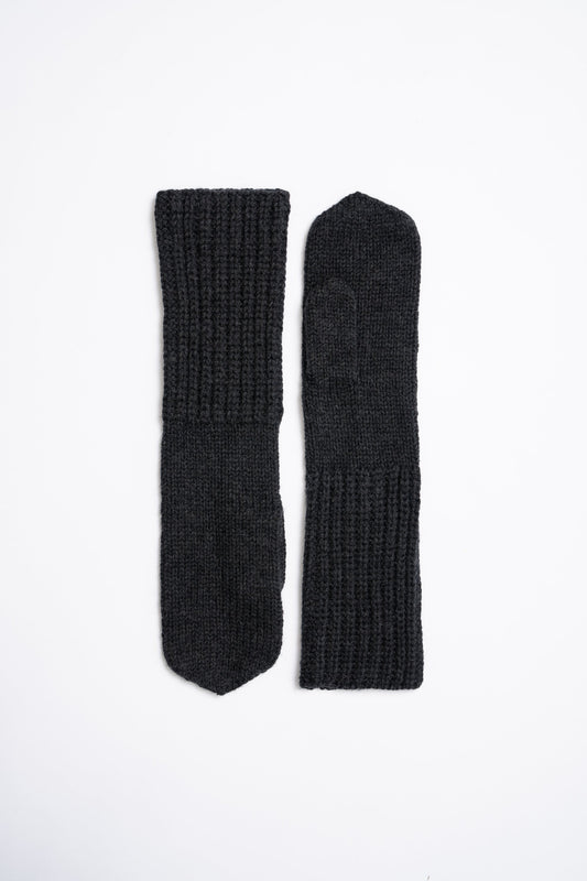 MERINO Handknit Long Mittens - Onyx Grey