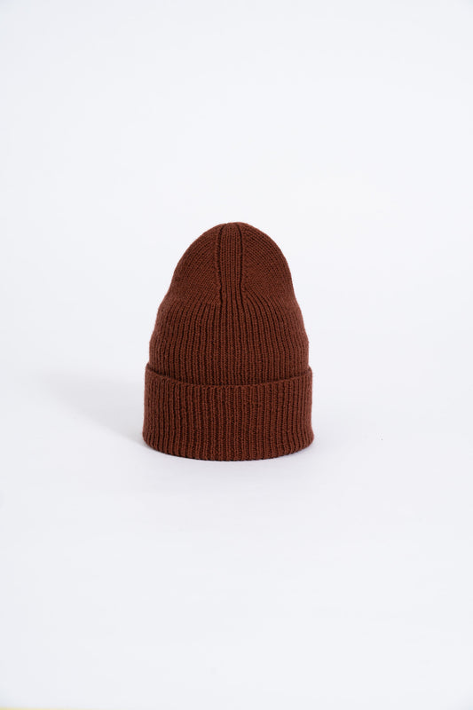 Sold outMERINO Handknit Rib Hat - Rust Red