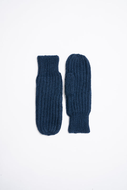 MERINO Handknit Rib Mittens - Indigo Blue