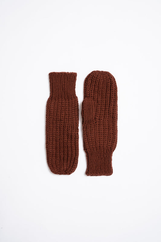 MERINO Handknit Rib Mittens - Rust Red