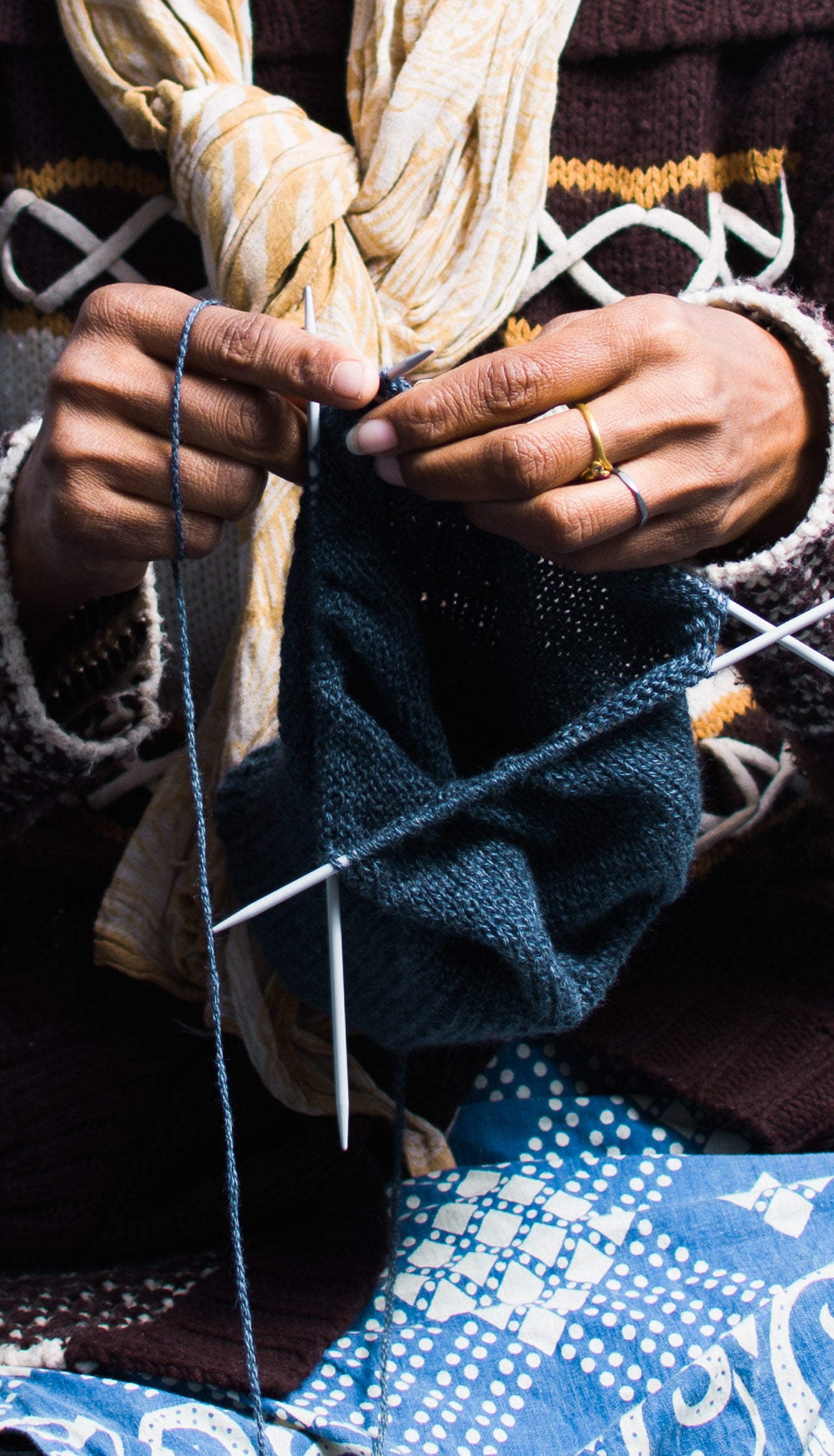 MERINO Handknit Thick Rib Hat - Indigo Blue