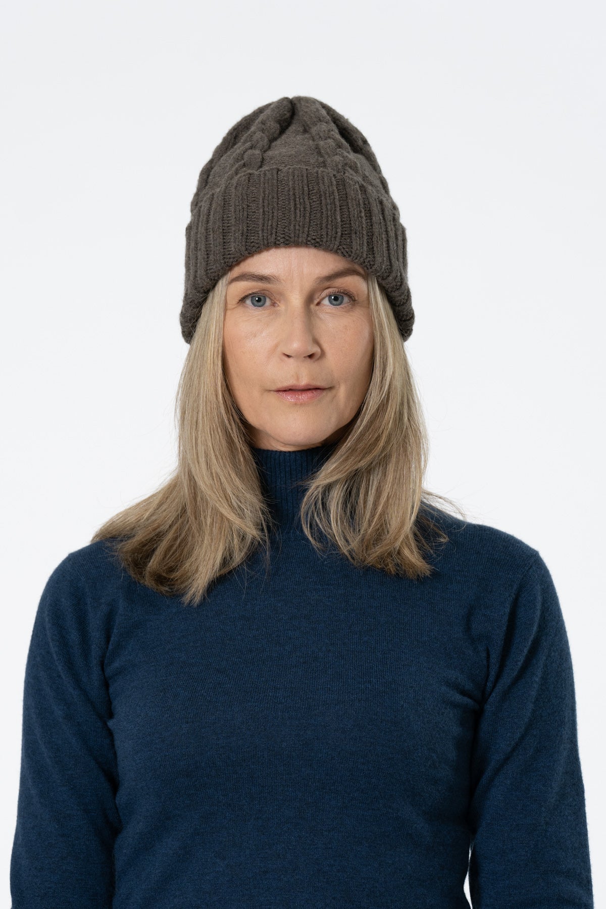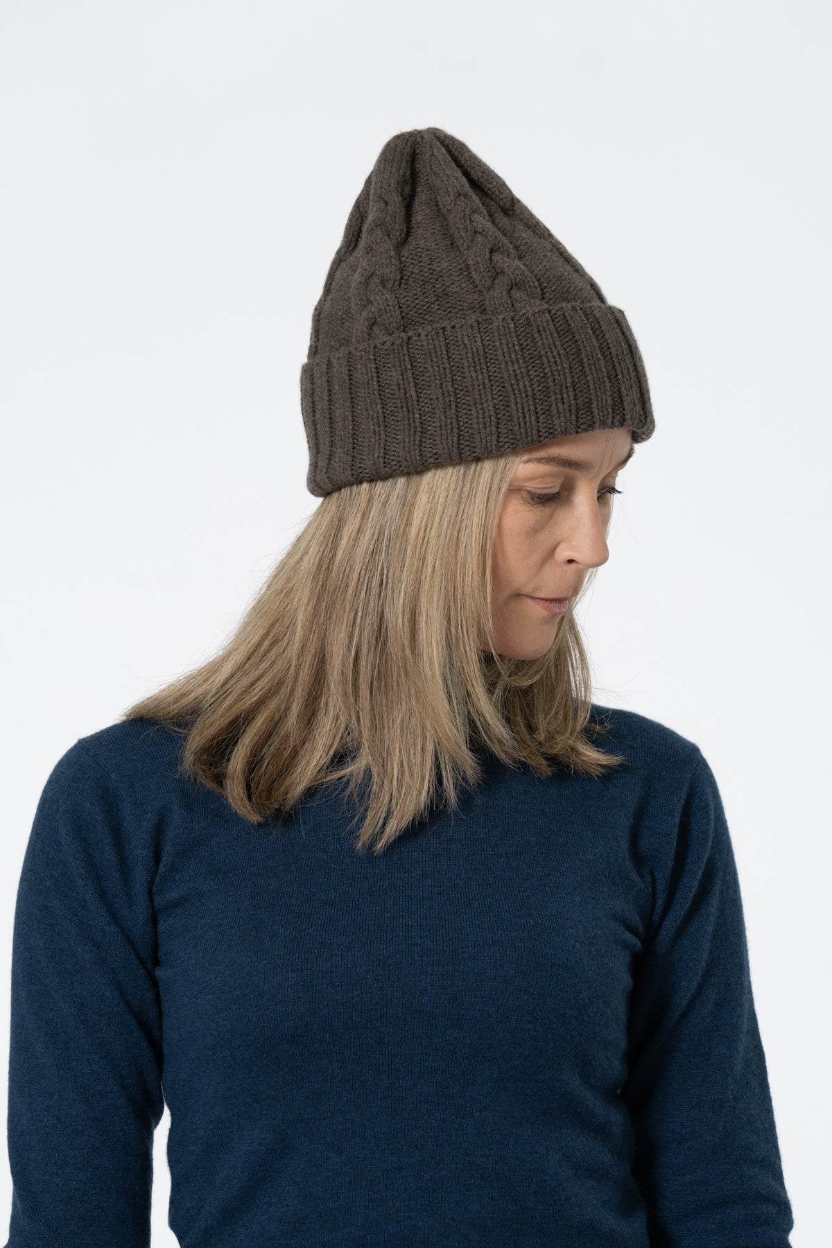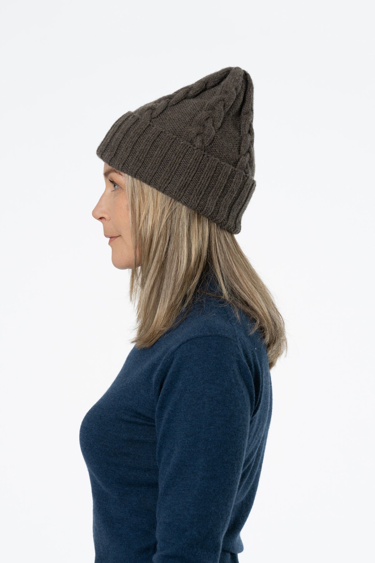 MERINO Handknit Cable Hat - Mulch Brown