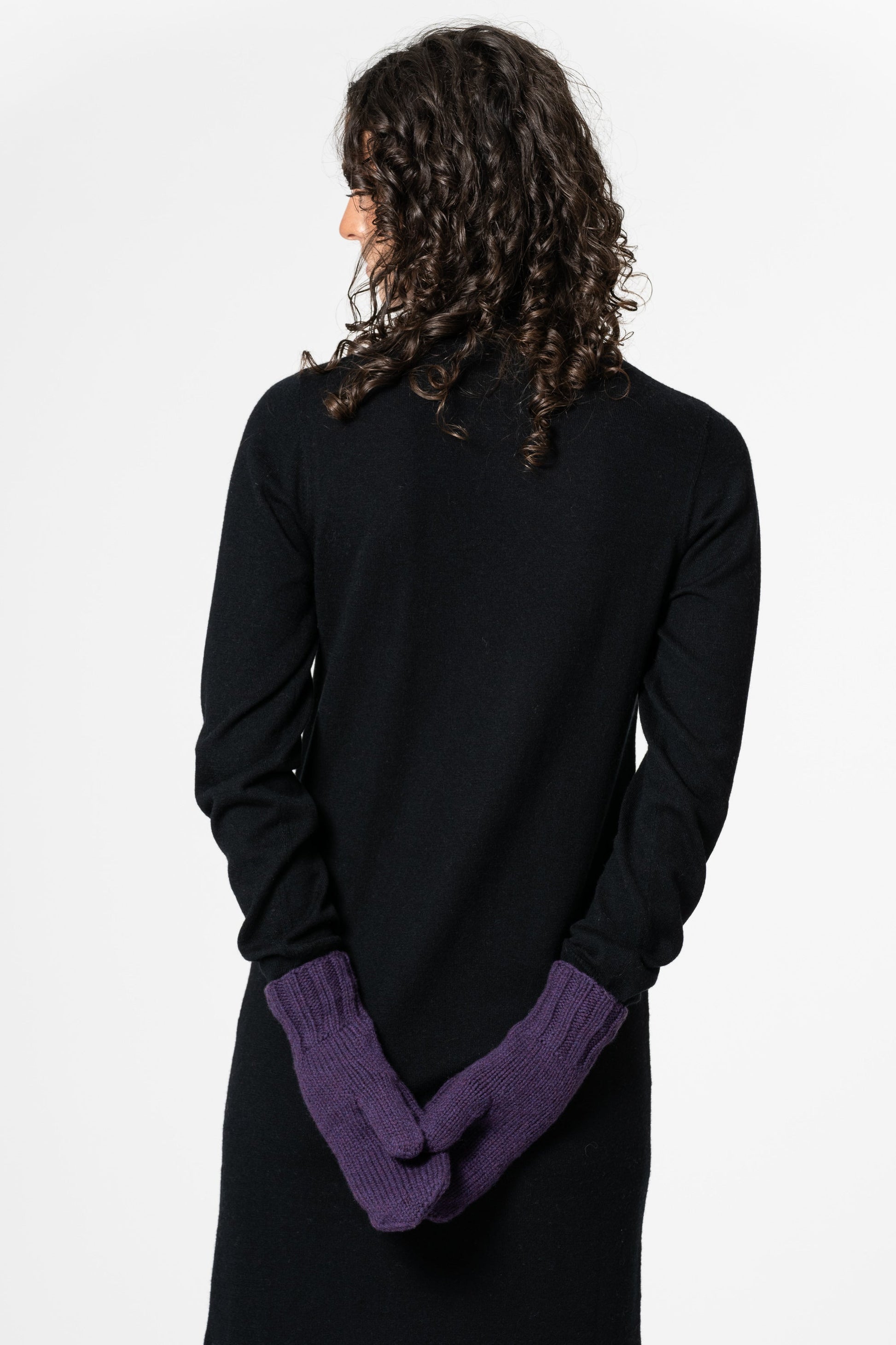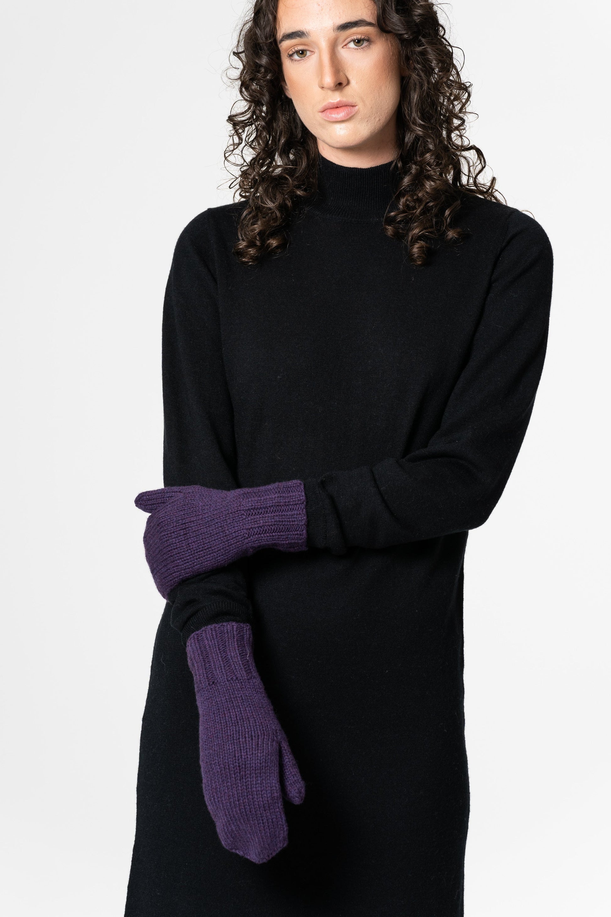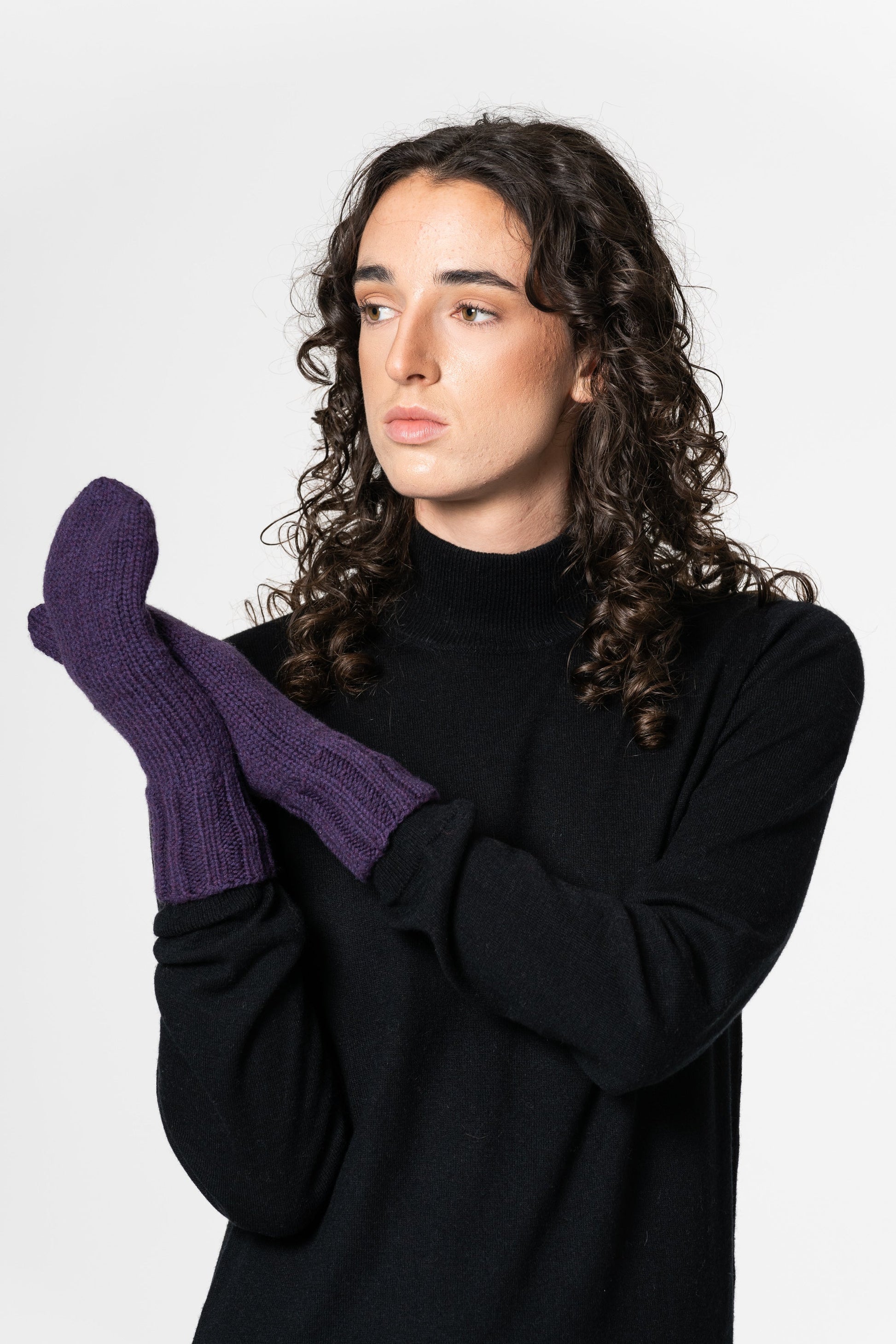 Knitted mittens with ribbed cuffs, plain knitted body and a slightly pointed top. Hand knitted in extra fine merino wool.