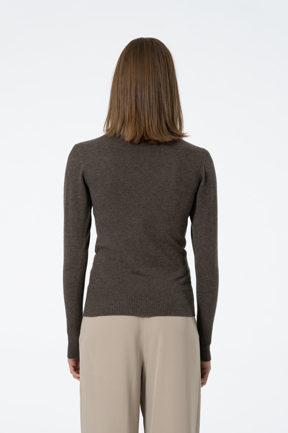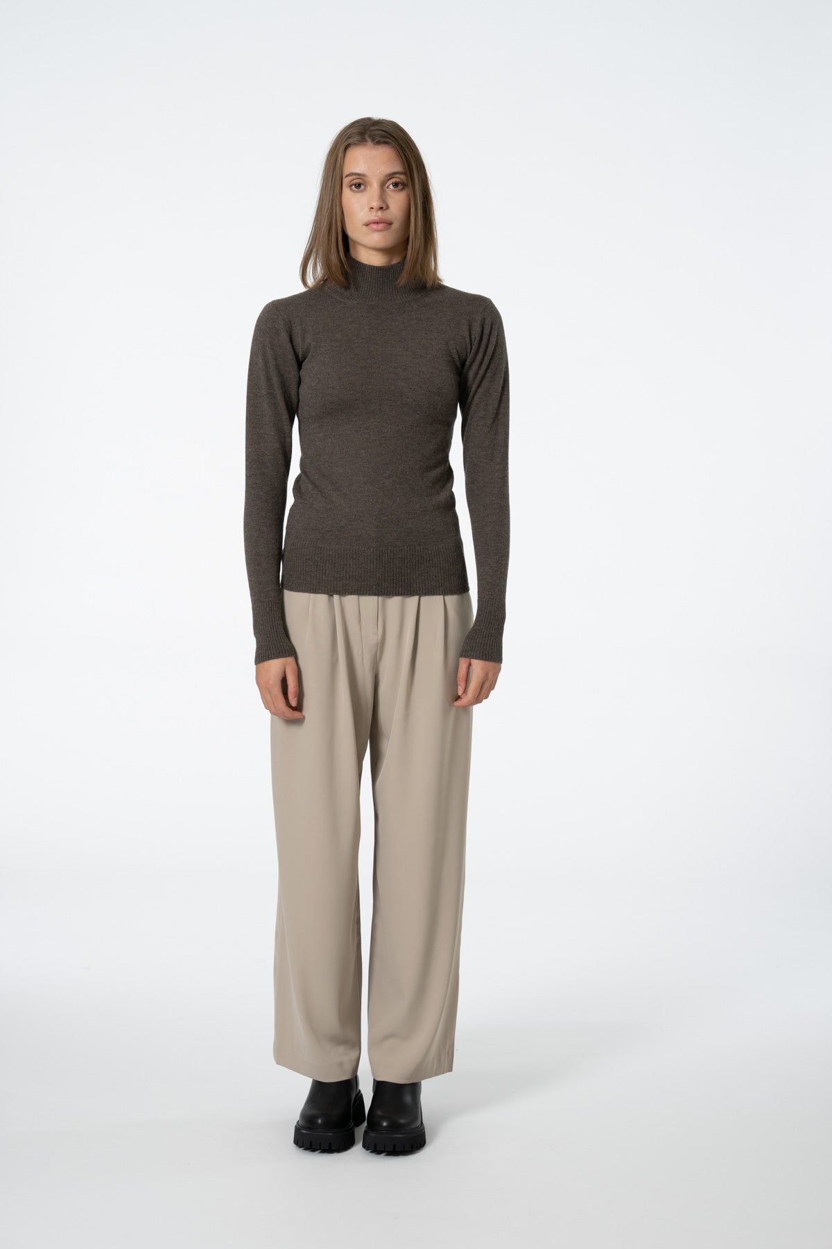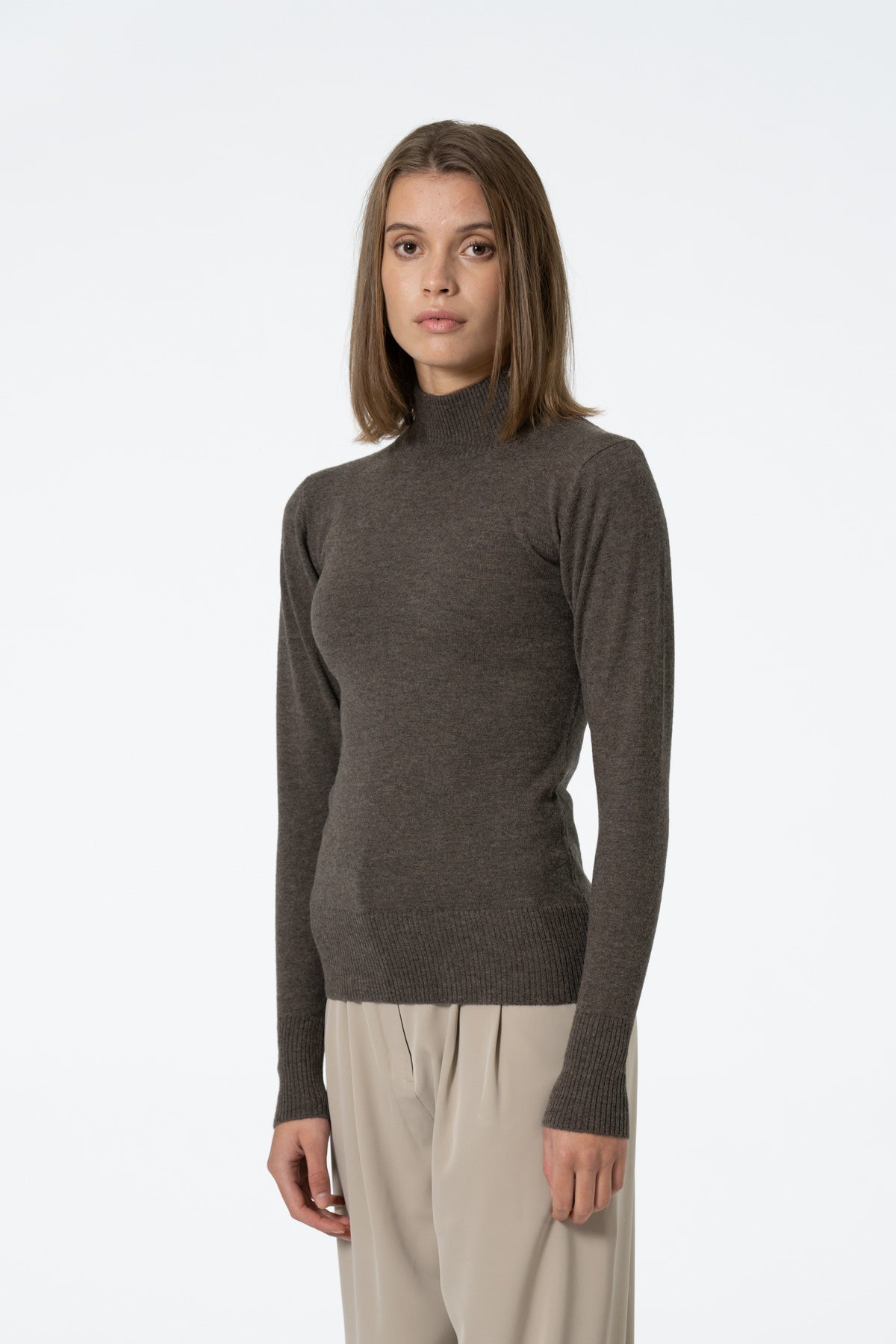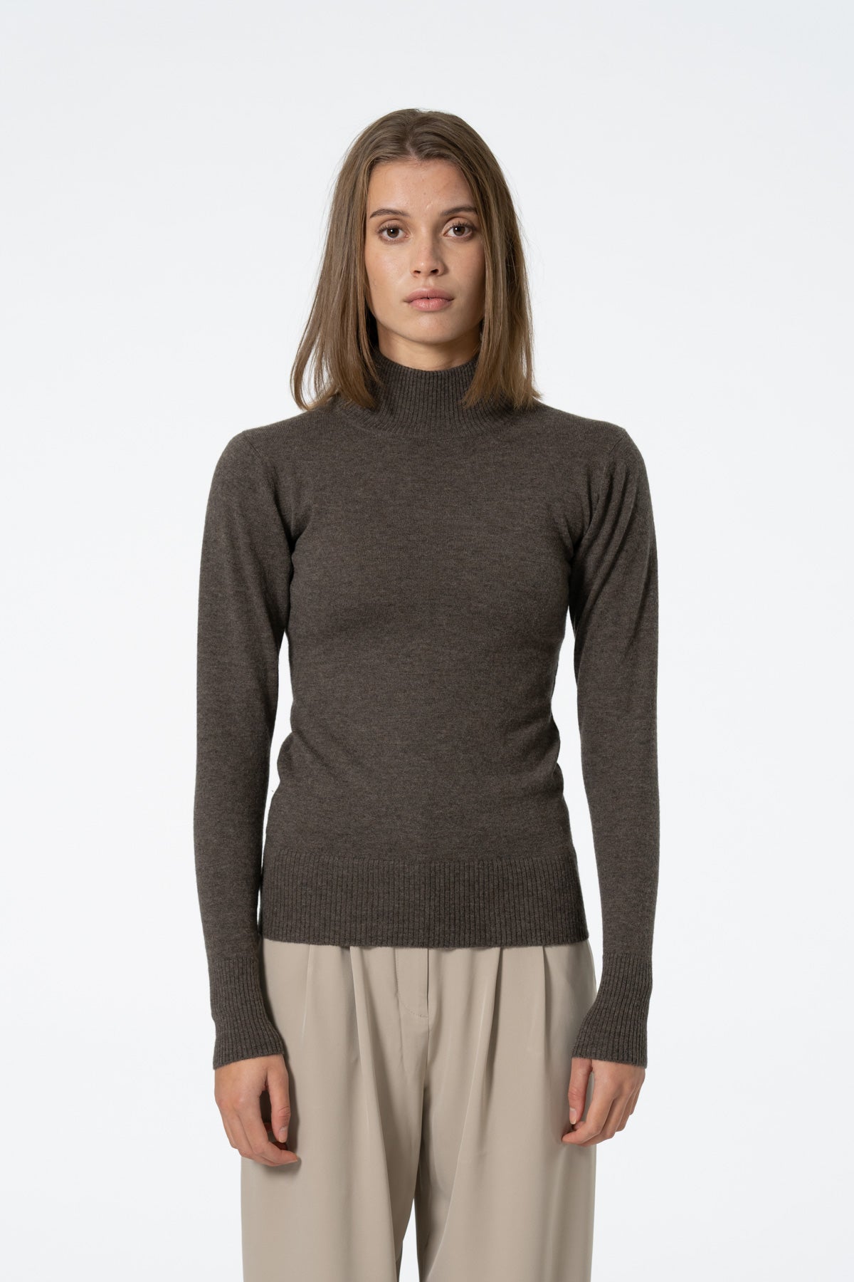A lightweight fitted turtleneck with a tall mock neck makes this sweater a versatile piece that can be worn on it's own or layered. Body length 64 cm in size M. Knitted in extra fine merino wool.