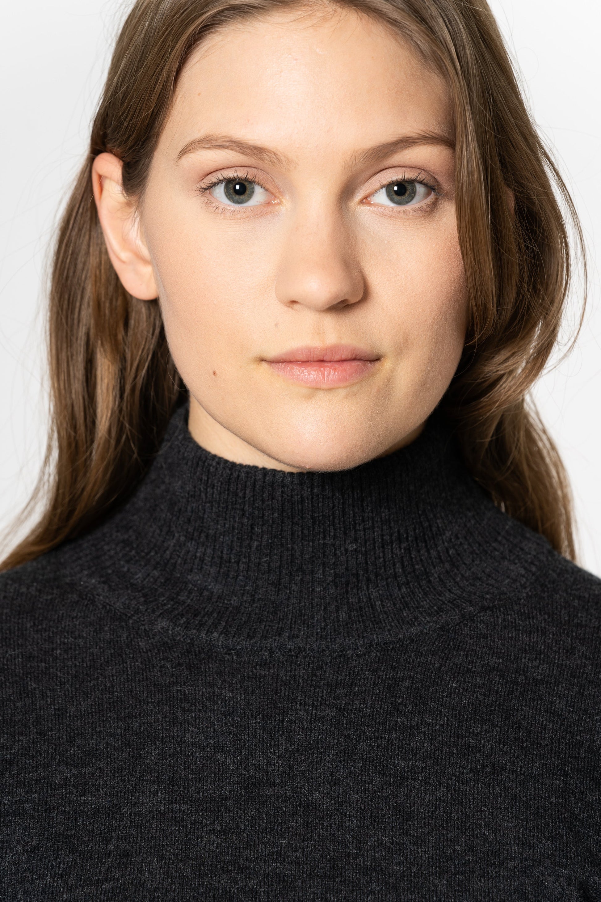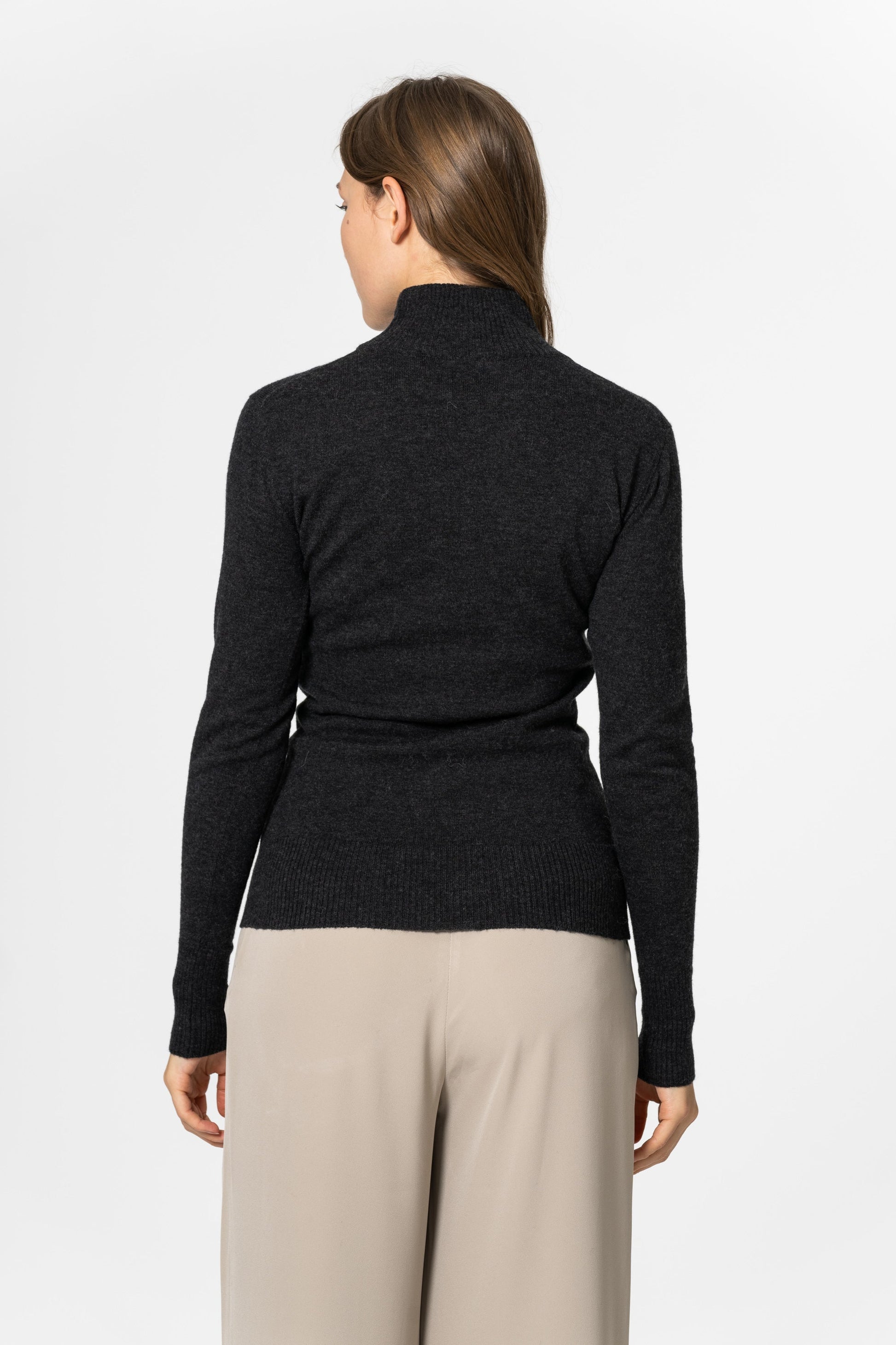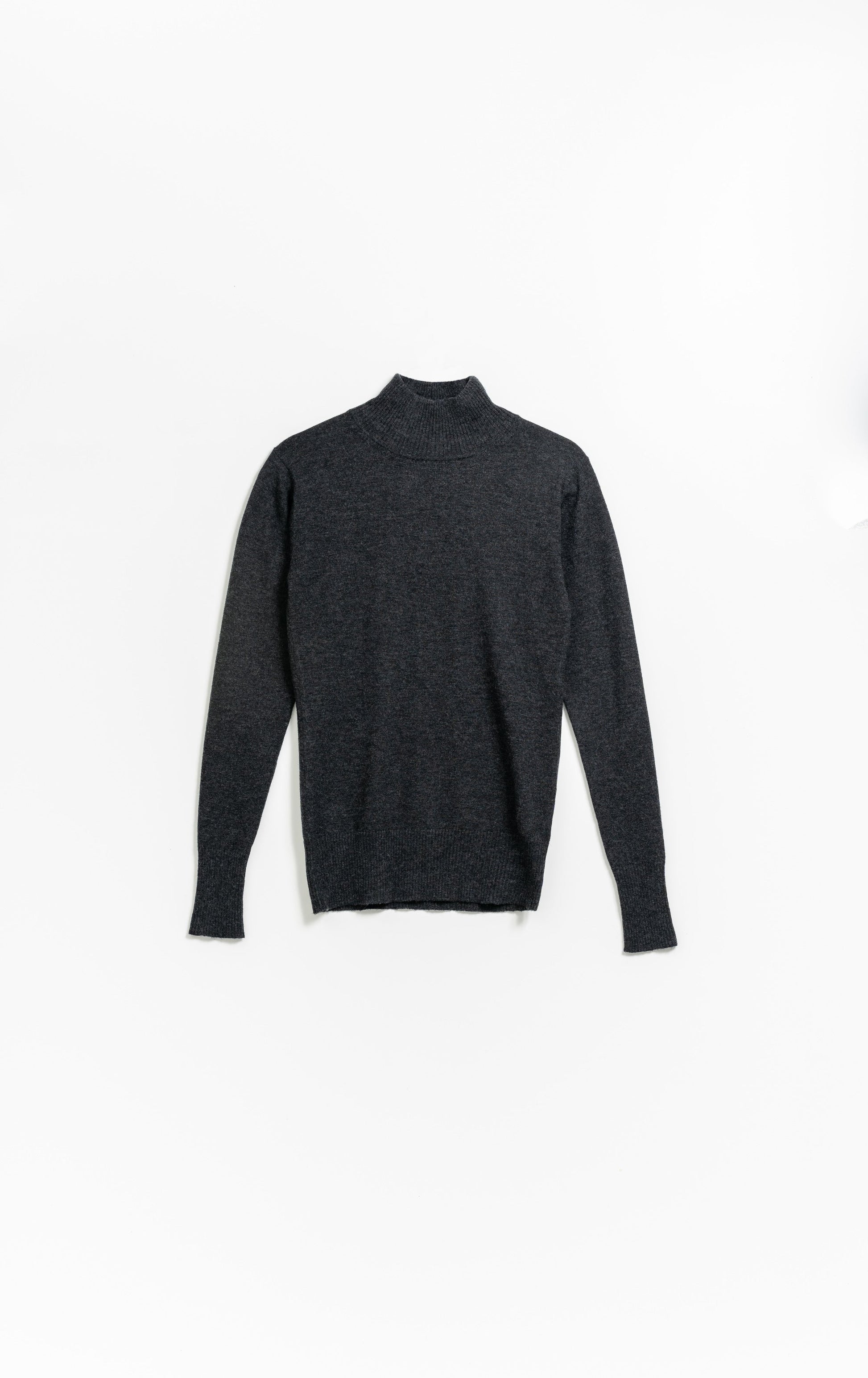 A lightweight fitted turtleneck with a tall mock neck makes this sweater a versatile piece that can be worn on it's own or layered. Knitted in extra fine merino wool.