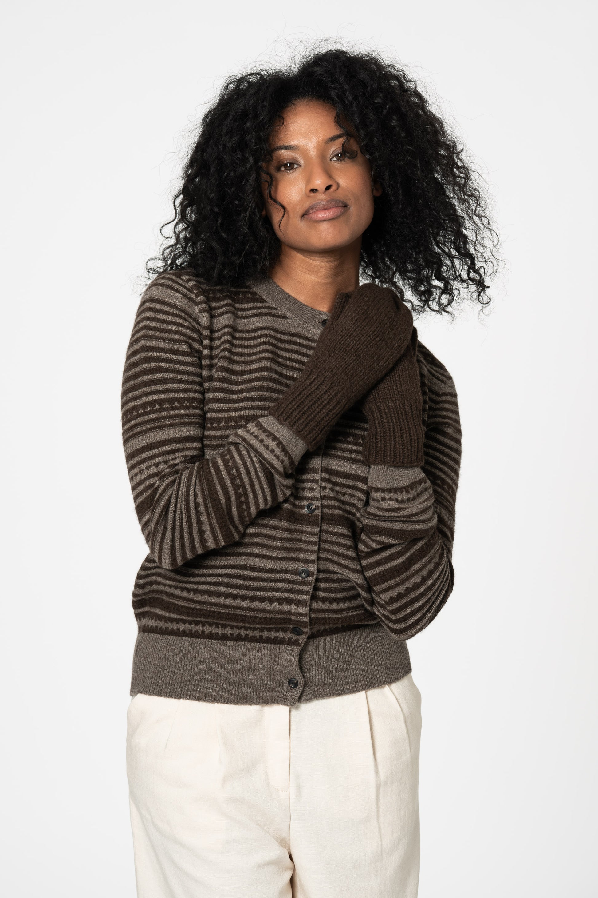 We partner with a social enterprise on the Tibetan Plateau that works closely with local yak herders to gather the fibers. In partnering with them we can ensure high traceability throughout our supply and production chain. Our yak is natural and undyed and comes in two colors, Oat Brown and Dark Brown